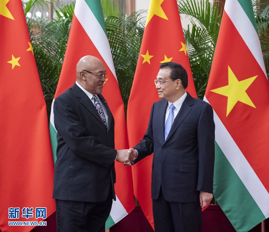 李克強(qiáng)表示,中國和蘇里南雖然相隔萬里,但兩國人民之間友好情誼深厚。建交40多年來,雙邊關(guān)系始終健康穩(wěn)定發(fā)展。習(xí)近平主席將同總統(tǒng)先生舉行會談,推動中蘇關(guān)系邁上新臺階。我們愿繼續(xù)在相互尊重、平等相待的基礎(chǔ)上,同蘇方增進(jìn)政治互信,對接發(fā)展戰(zhàn)略,促進(jìn)務(wù)實(shí)合作,擴(kuò)大人文交流,更好實(shí)現(xiàn)互利共贏。