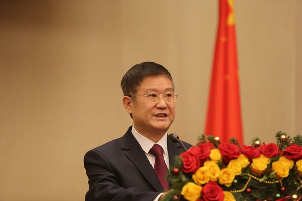 12月15日,中國(guó)駐白俄羅斯大使崔啟明在華人華僑新年招待會(huì)上致辭。魏忠杰 攝