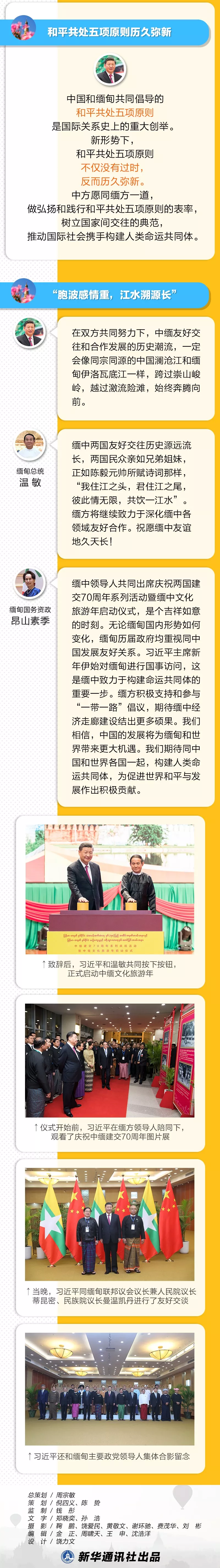 1月17日,國家主席習(xí)近平抵達內(nèi)比都,開始對緬甸進行為期兩天的國事訪問。第一天行程滿滿,其中一項重要活動就是,出席中緬建交70周年慶?;顒郁咧芯捨幕糜文陠觾x式。習(xí)主席和緬甸總統(tǒng)溫敏、國務(wù)資政昂山素季在儀式上分別致辭,其中信息量滿滿。