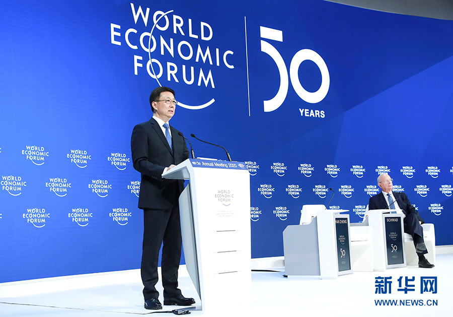 當(dāng)?shù)貢r間1月21日,中共中央政治局常委、國務(wù)院副總理韓正出席達(dá)沃斯世界經(jīng)濟論壇2020年年會,發(fā)表題為“共建開放型世界經(jīng)濟 推動全球可持續(xù)發(fā)展”的致辭。 新華社記者 龐興雷 攝
