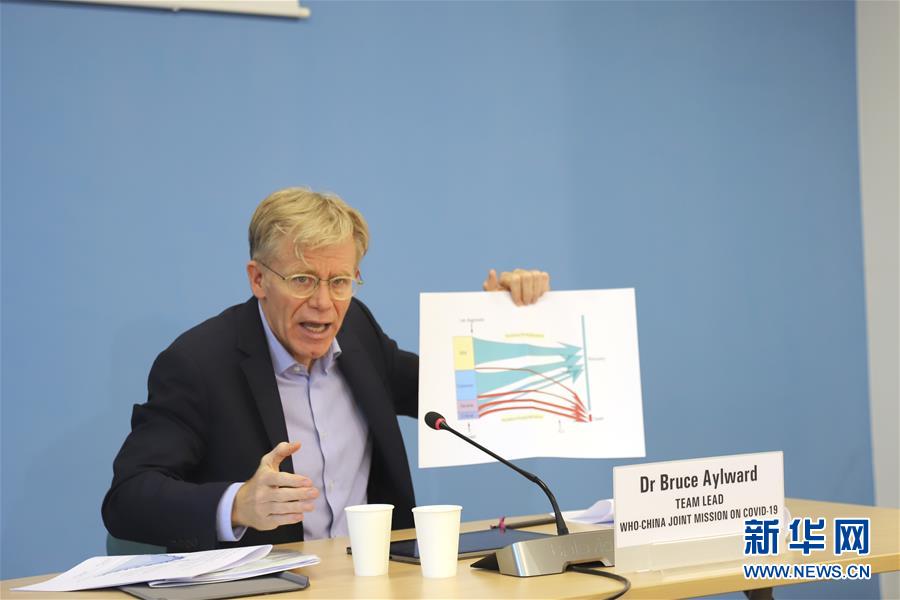 世界衛(wèi)生組織赴中國(guó)考察專家組負(fù)責(zé)人布魯斯·艾爾沃德25日在世衛(wèi)組織日內(nèi)瓦總部舉行的記者會(huì)上,對(duì)中國(guó)采取的務(wù)實(shí)而靈活的大規(guī)模防控疫情措施表示贊賞。 新華社記者 陳俊俠 攝