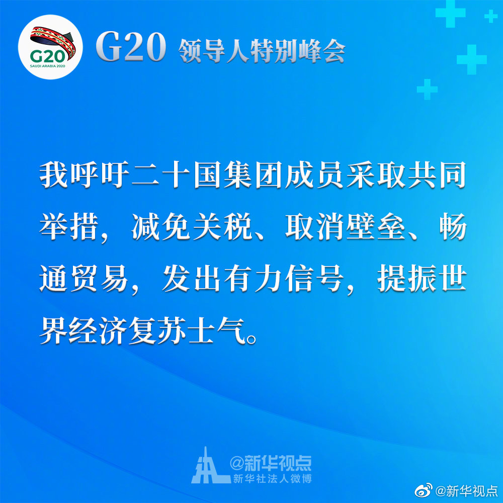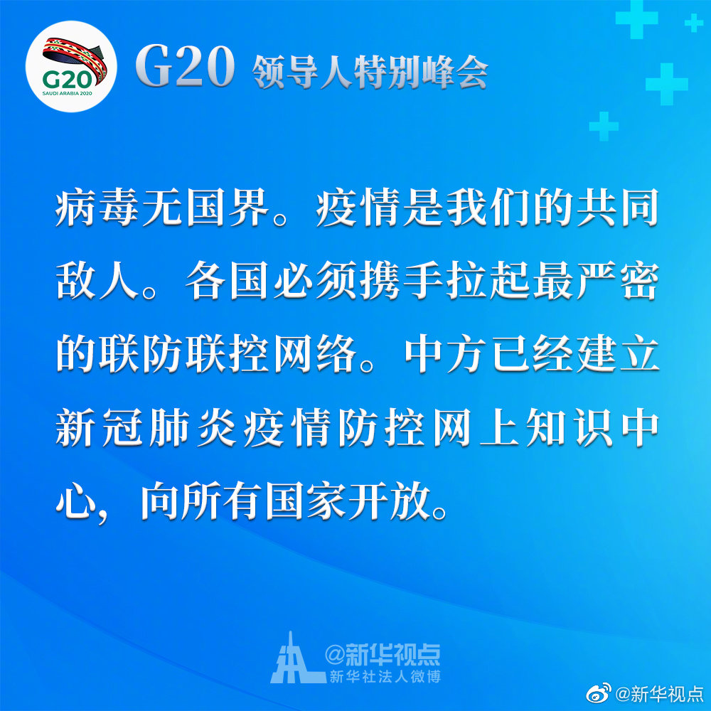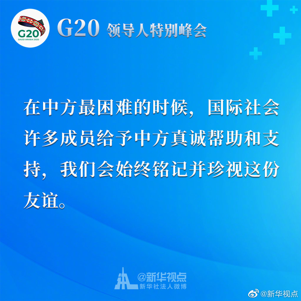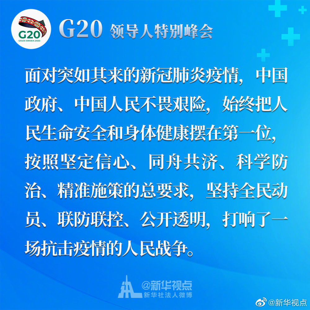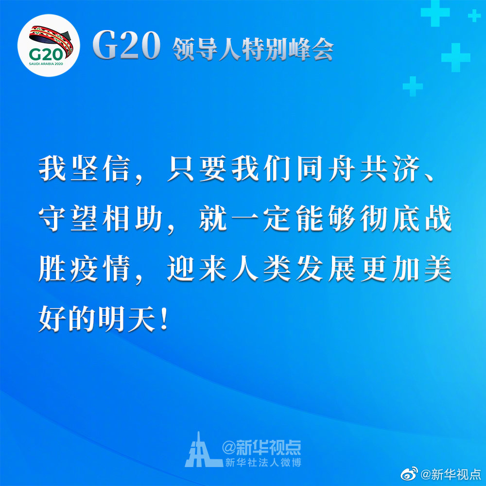 習近平在二十國集團領(lǐng)導(dǎo)人應(yīng)對新冠肺炎特別峰會上重要講話金句