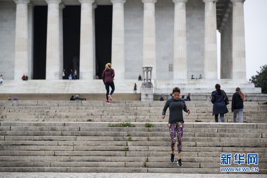 3月28日,在美國首都華盛頓,人們在林肯紀念堂附近參觀游覽。 新華社發(fā)(沈霆攝)