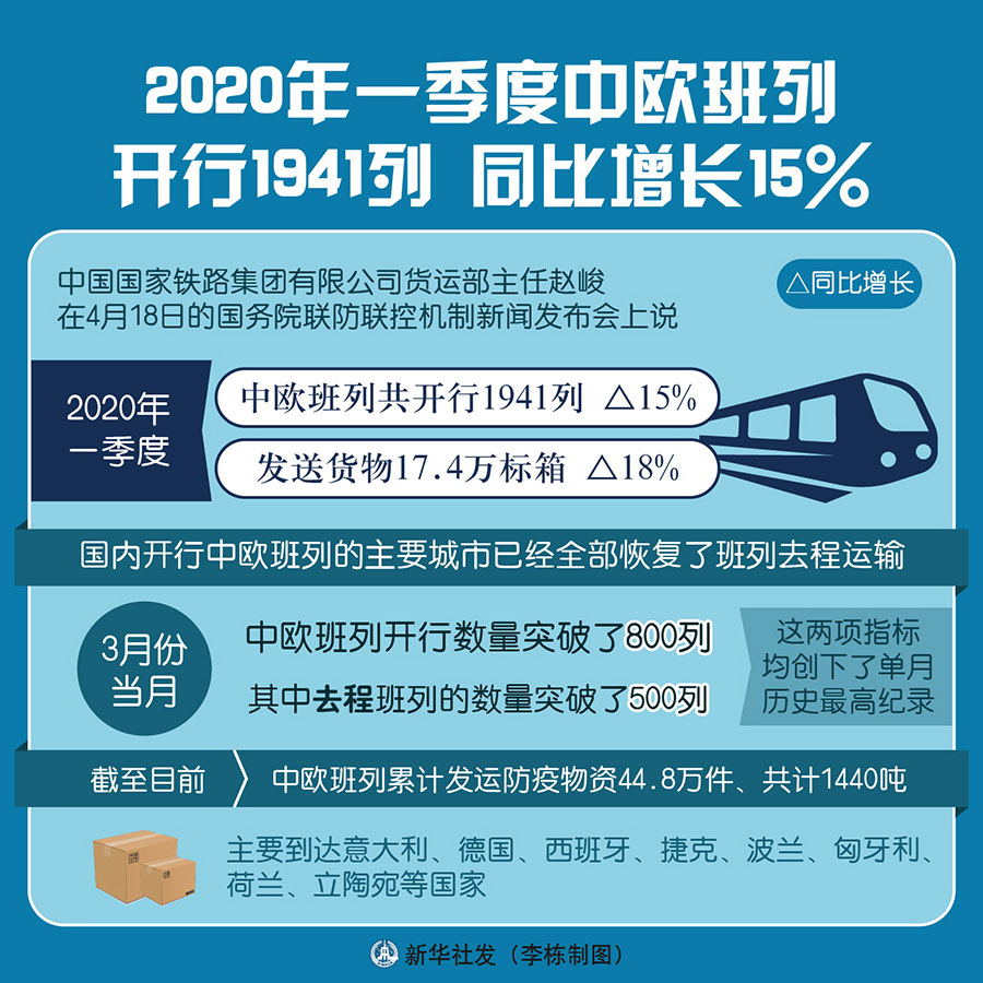 疫情之下,中歐班列成為防疫物資運(yùn)輸?shù)闹匾锪魍ǖ馈?jù)趙峻介紹,截至目前,中歐班列累計(jì)發(fā)運(yùn)防疫物資44.8萬件、共計(jì)1440噸,主要到達(dá)意大利、德國、西班牙、捷克、波蘭、匈牙利、荷蘭、立陶宛等國家,并以這些國家為節(jié)點(diǎn),分撥到更多的歐洲國家,有力促進(jìn)了國際防疫合作。