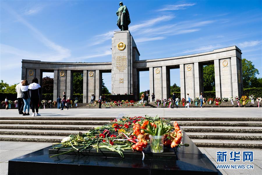 這是5月8日在德國首都柏林拍攝的蒂爾加滕蘇軍紀念碑一角。 當日,許多德國柏林民眾自發(fā)前往相關場所紀念第二次世界大戰(zhàn)“歐洲勝利日”75周年。 新華社發(fā)(張平攝)