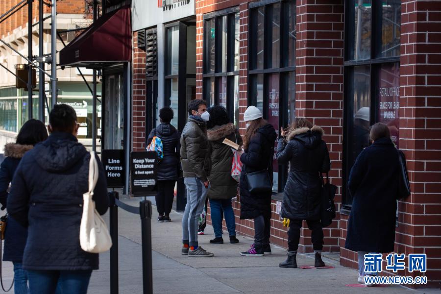 12月3日,在美國紐約,人們排隊(duì)等待新冠檢測。