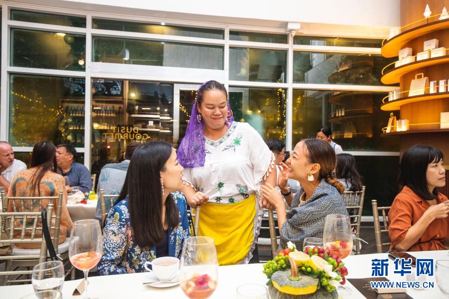 11月23日,廚娘卡妮塔(中)在泰國曼谷天堂酒店向客人介紹她烹制的葡式、泰式和中式風味的融合菜。新華社記者 陳家寶 攝