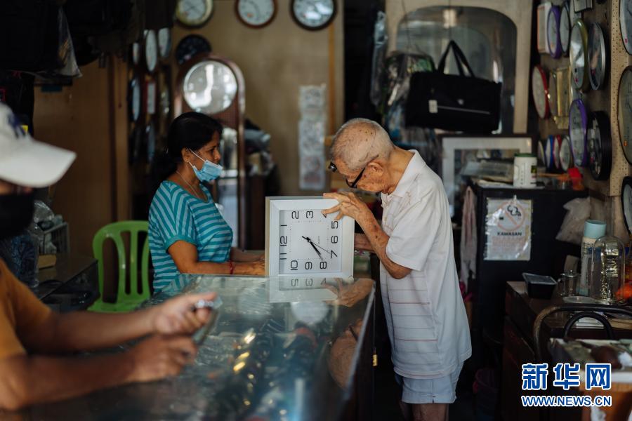 12月5日,在馬來西亞雪蘭莪州巴生的郁昌表行,韋華查看顧客送來的時(shí)鐘。新華社記者 朱煒 攝