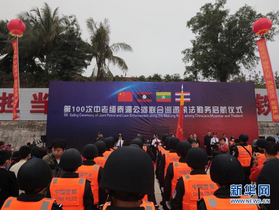 這是第100次中老緬泰湄公河聯(lián)合巡邏執(zhí)法勤務(wù)啟航儀式現(xiàn)場(chǎng)(12月8日攝)。新華社發(fā)(云南省公安廳水上巡邏總隊(duì)提供)