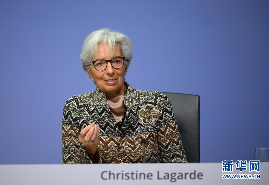 12月10日,在德國(guó)法蘭克福的歐洲中央銀行總部,歐洲央行行長(zhǎng)拉加德在新聞發(fā)布會(huì)上講話。新華社發(fā)(歐洲中央銀行供圖)