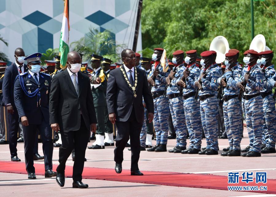 12月14日,在科特迪瓦阿比讓,瓦塔拉(前右)宣誓就職后參加檢閱儀式。新華社發(fā)(伊萬(wàn)·宋攝)