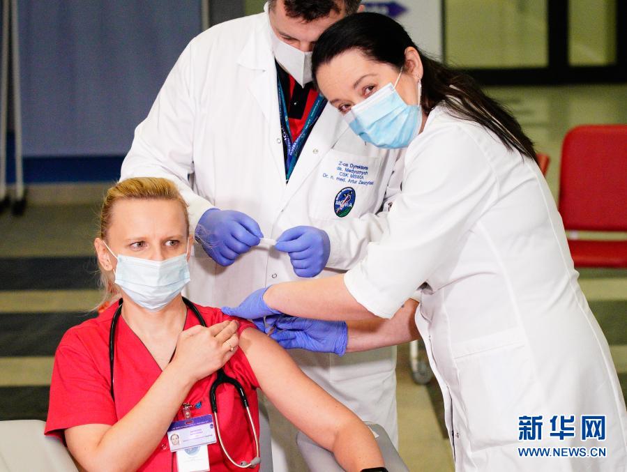 12月27日,在波蘭首都華沙一家醫(yī)院,一名醫(yī)生接種新冠疫苗。新華社發(fā)(亞普·阿林攝)