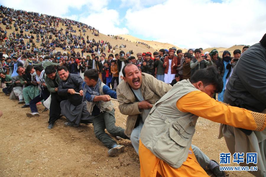 3月21日,人們在阿富汗巴米揚參加諾魯孜節(jié)拔河活動。當日,阿富汗民眾迎來諾魯孜節(jié)。新華社發(fā)(阿齊米 攝)