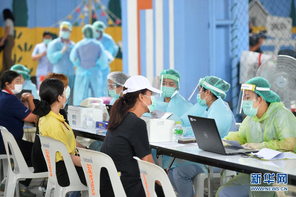 4月7日,居民在泰國曼谷準(zhǔn)備接種中國科興新冠疫苗。