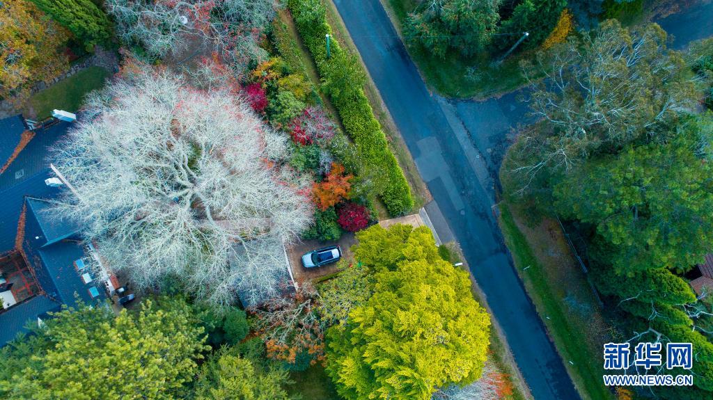 這是5月3日在澳大利亞悉尼西部藍(lán)山地區(qū)拍攝的多彩的街道(無人機(jī)拍攝)。