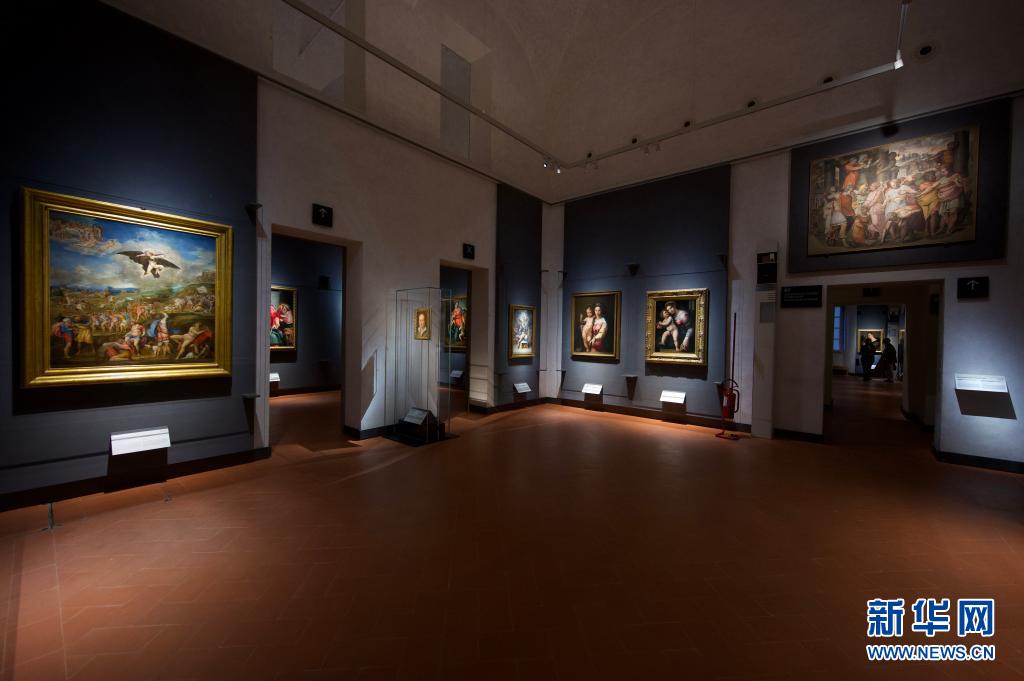 這是5月4日在意大利佛羅倫薩拍攝的烏菲齊美術館內的展室。當日,意大利烏菲齊美術館重新開放。美術館改建了售票處和接待處,以避免排隊,并開設了十四個新展室。新華社發(fā)