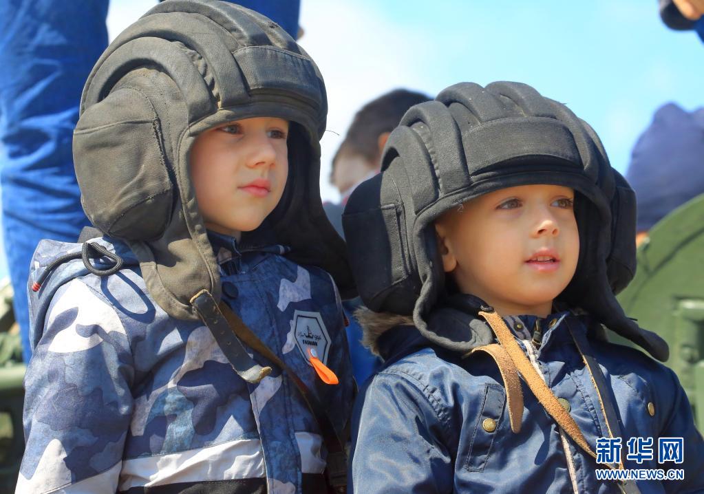 5月9日,在白俄羅斯首都明斯克,參加勝利日節(jié)慶活動(dòng)的兒童頭戴二戰(zhàn)時(shí)期軍用頭盔。