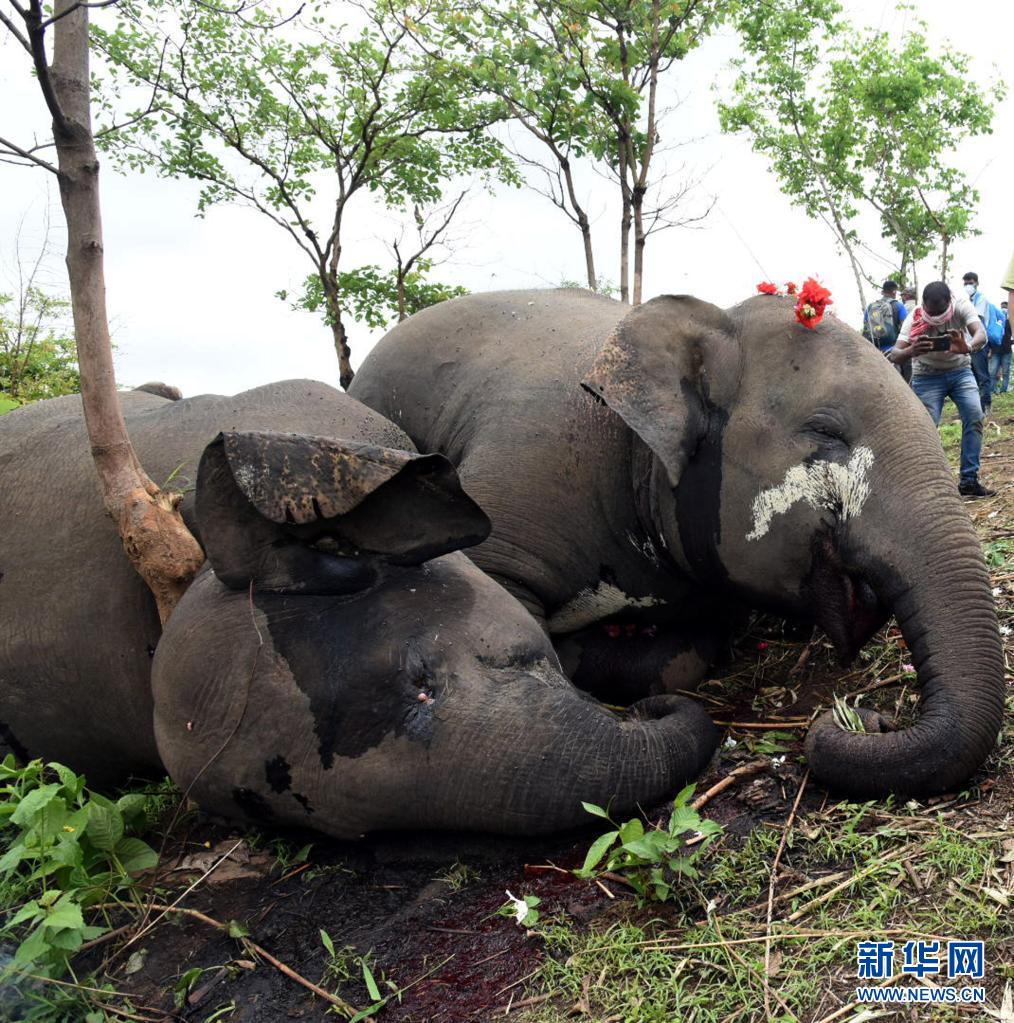 這是5月14日在印度阿薩姆邦納加奧恩地區(qū)拍攝的死去的象。