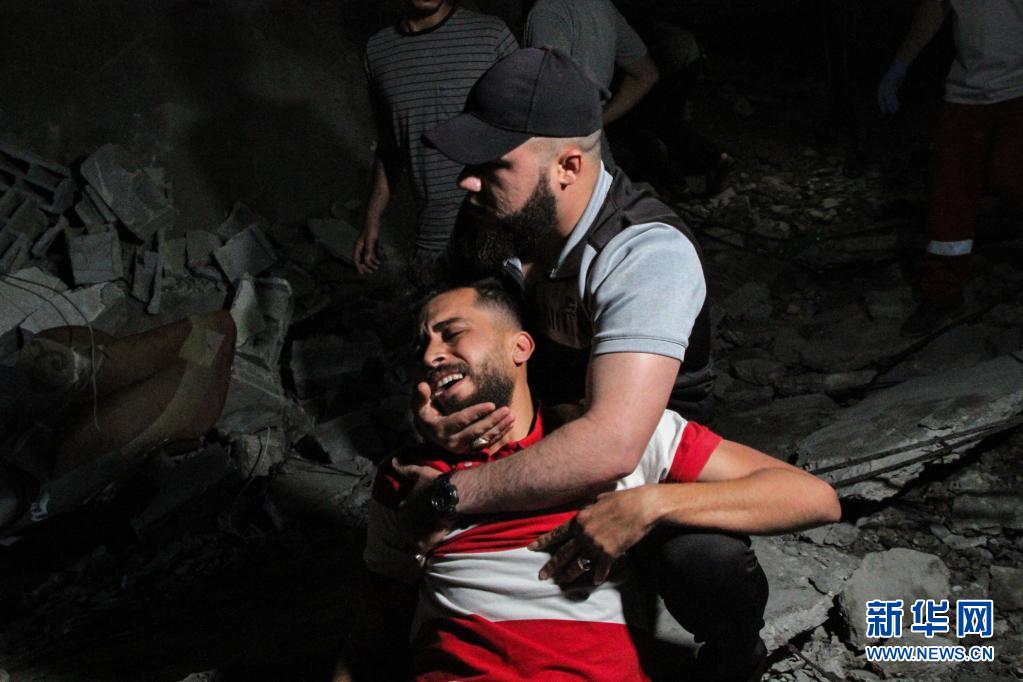 5月15日,在加沙城一處難民營(yíng),一名在空襲中失去親人的男子神色悲痛。