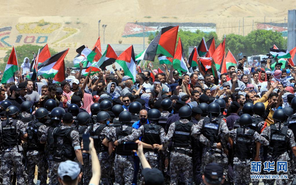 5月14日,人們在約旦凱拉邁附近舉行抗議示威活動,聲援巴勒斯坦民眾。