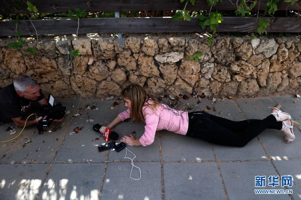 5月20日,人們?cè)谝陨心喜砍鞘邪⑹矂P隆接到火箭彈襲擊警報(bào)后就地躲避。