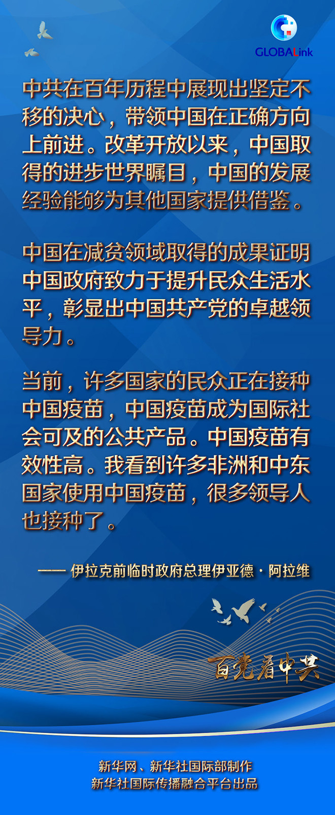 阿拉維對(duì)中國共產(chǎn)黨百年華誕表示祝賀。他說,中共在百年歷程中展現(xiàn)出堅(jiān)定不移的決心,帶領(lǐng)中國在正確方向上前進(jìn)。改革開放以來,中國取得的進(jìn)步世界矚目,中國的發(fā)展經(jīng)驗(yàn)?zāi)軌驗(yàn)槠渌麌姨峁┙梃b。