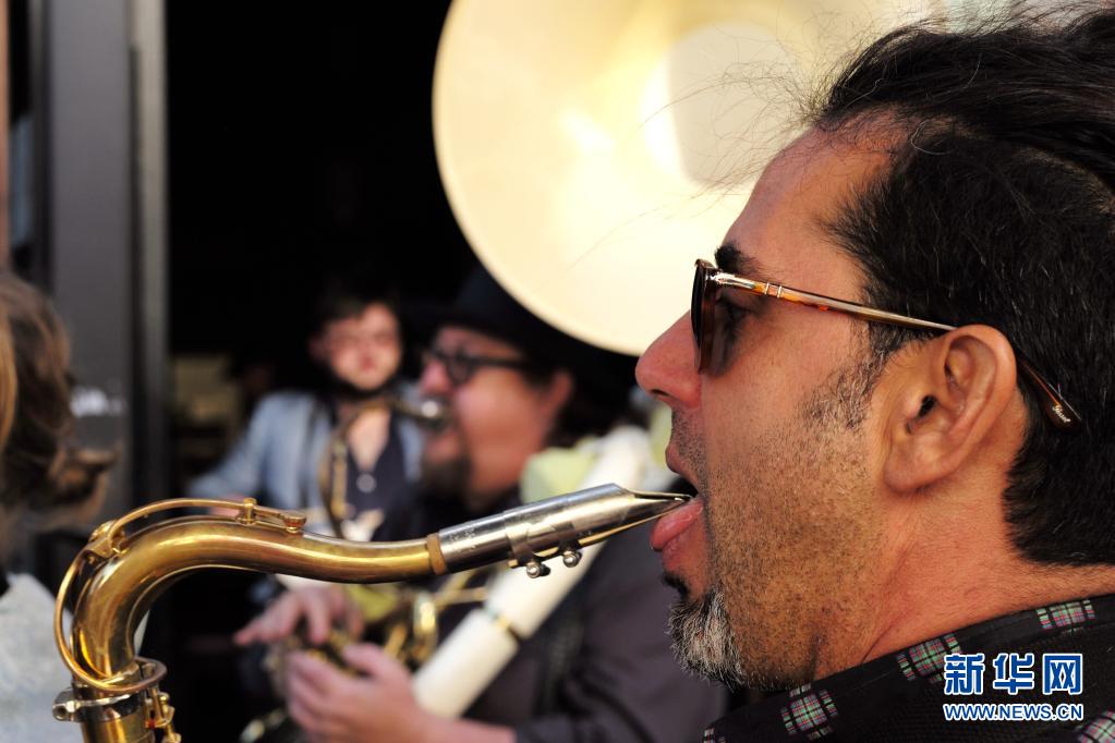 6月15日,樂(lè)隊(duì)成員在美國(guó)加利福尼亞州舊金山一家酒吧外演奏。