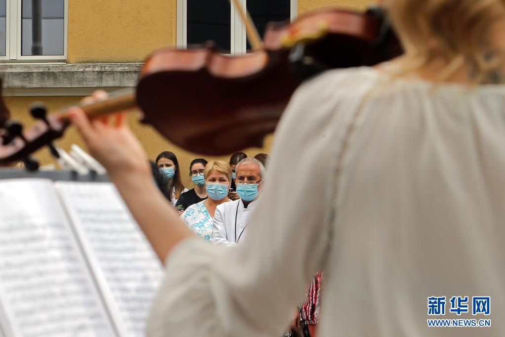 當(dāng)日,羅馬尼亞首都布加勒斯特一個(gè)樂隊(duì)在該國(guó)一家傳染病醫(yī)院——馬太·巴爾什醫(yī)院演出,向抗擊新冠疫情的醫(yī)務(wù)工作者致謝。