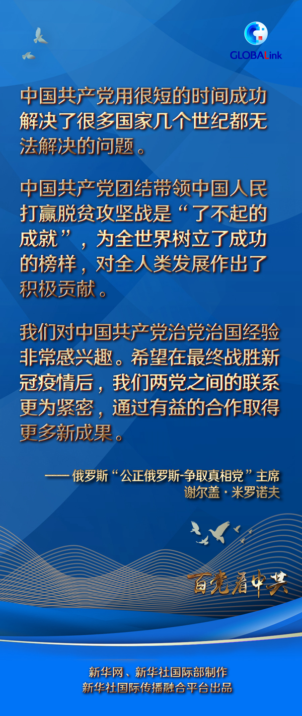 米羅諾夫說,中國共產(chǎn)黨團結(jié)帶領(lǐng)中國人民打贏脫貧攻堅戰(zhàn)是“了不起的成就”,為全世界樹立了成功的榜樣,對全人類發(fā)展作出了積極貢獻。