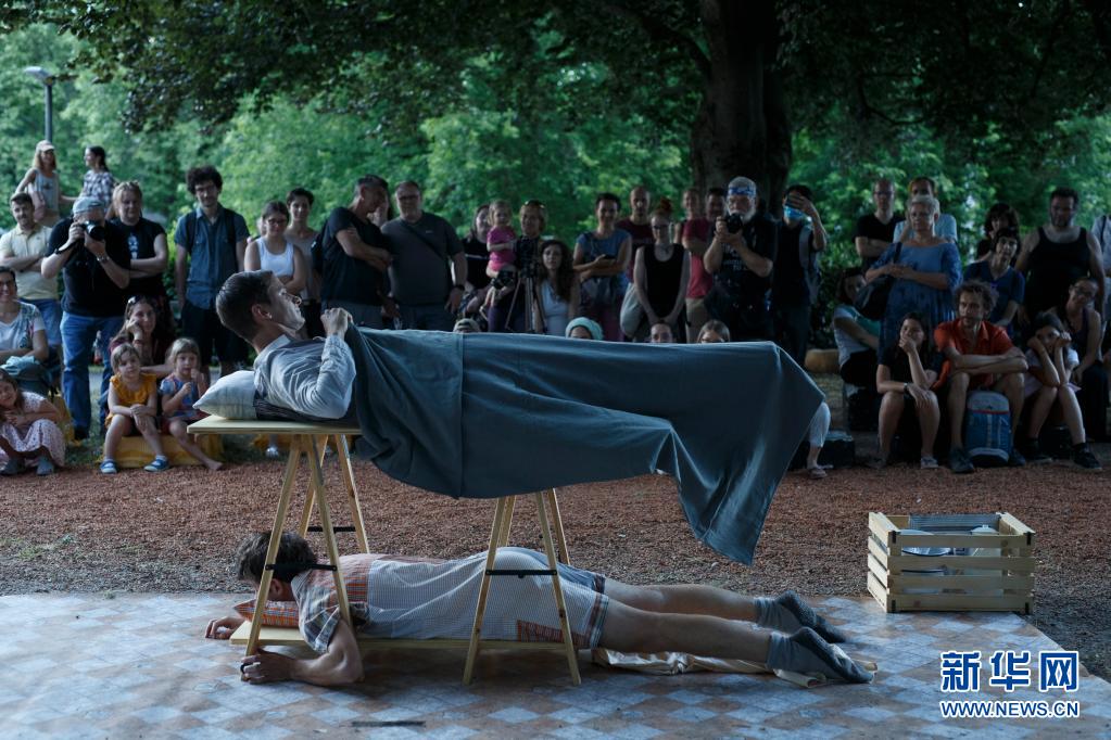 6月30日傍晚,藝術工作者在斯洛文尼亞首都盧布爾雅那進行街頭戲劇節(jié)表演。