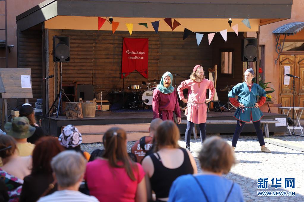 芬蘭古城圖爾庫于7月1日至4日舉行“中世紀市集”活動。人們身著中世紀風格服裝售賣貨品,表演短劇、馬戲和歌舞。